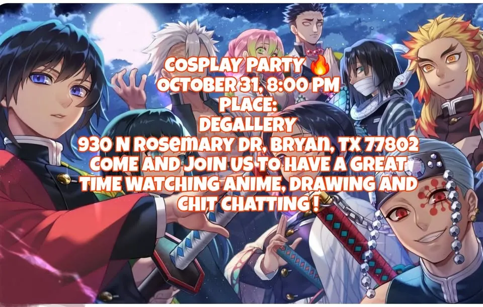 We look forward to seeing all the amazing costumes and enjoying your company. Get ready for a night filled with fun watching Anime, drawing and chit-chatting.